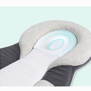 הכרית לאיזור הראש מתוכננת ארגונומית כך שתעטוף את העיקול הטבעי בראשו של התינוק. מה שמפחית את הסיכויים לתסמונת ראש שטוח אצל תינוקות.