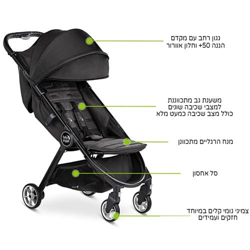 - מנעול אוטומטי – המאבטח את קיפול העגלה בעת שימוש בתחבורה או באחסון המקלים על הטיול בעיר
